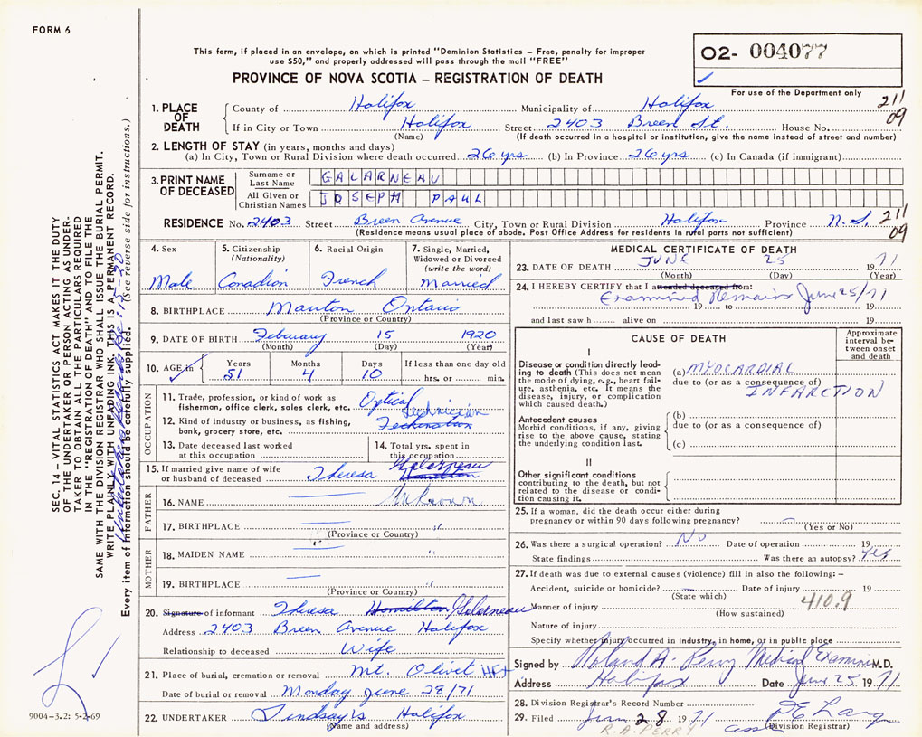 3. PRINT NAME OF DECEASED Galarneau, Joseph Paul