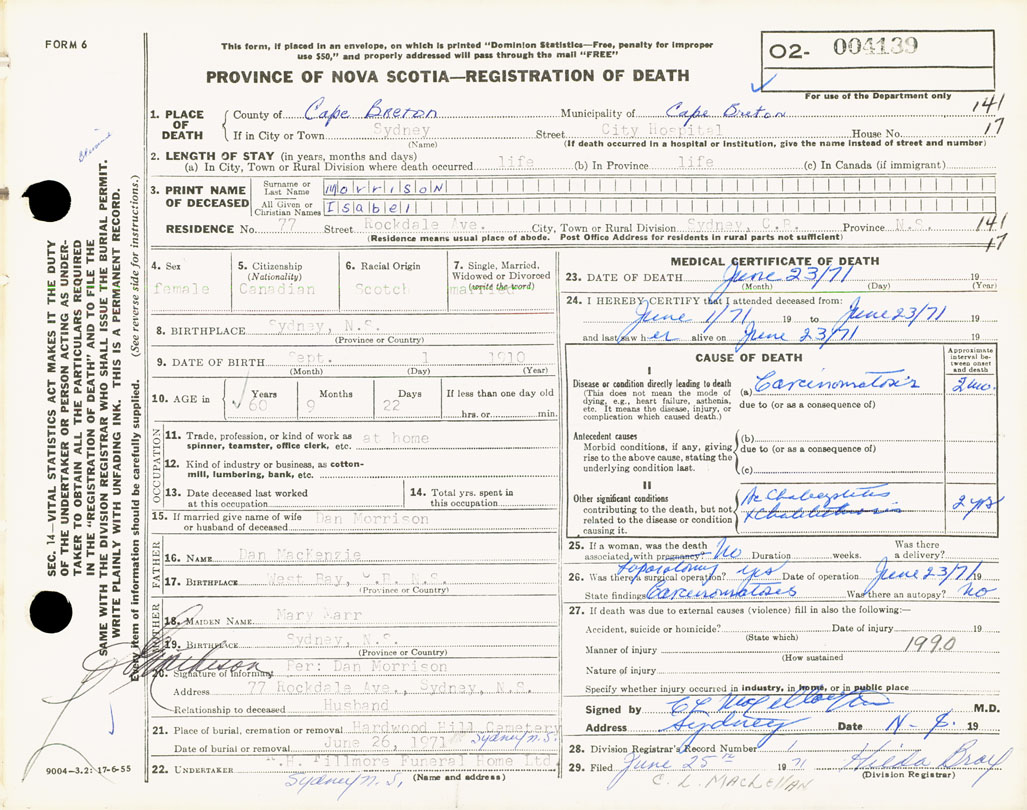 Nova Scotia Archives — https://archives.novascotia.ca/vital-statistics/death/?ID=496214