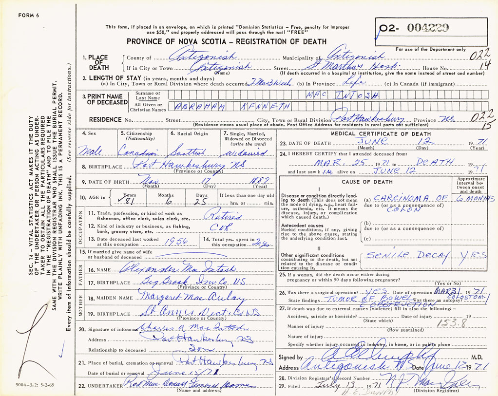 Nova Scotia Archives — https://archives.novascotia.ca/vital-statistics/death/?ID=496304