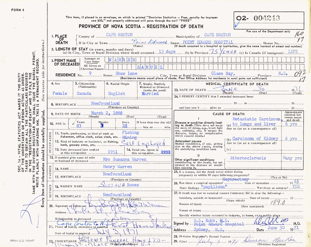 Nova Scotia Archives — https://archives.novascotia.ca/vital-statistics/death/?ID=496318