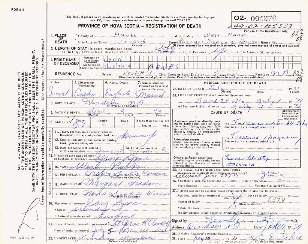 Nova Scotia Archives — https://archives.novascotia.ca/vital-statistics/death/?ID=496351