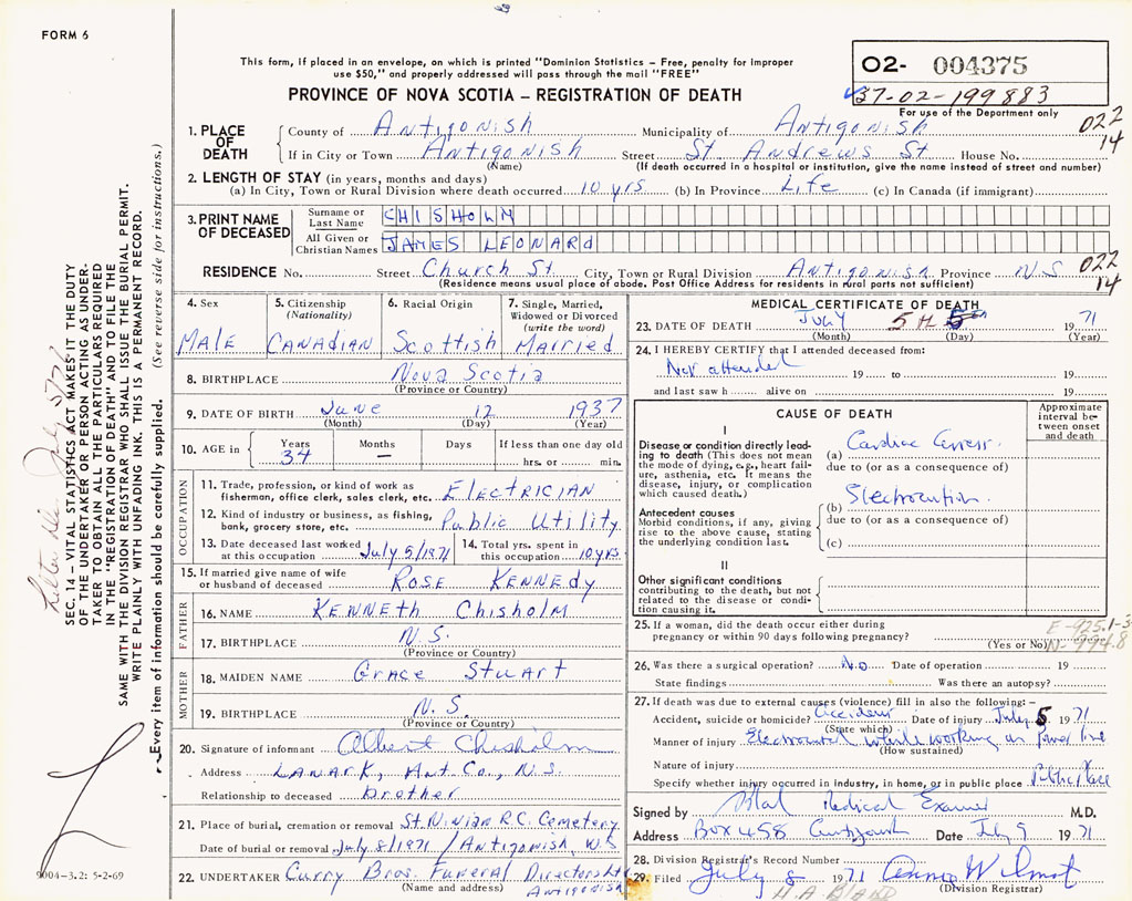 PROVINCE OF NOVA SCOTIA — REGISTRATION OF DEATH