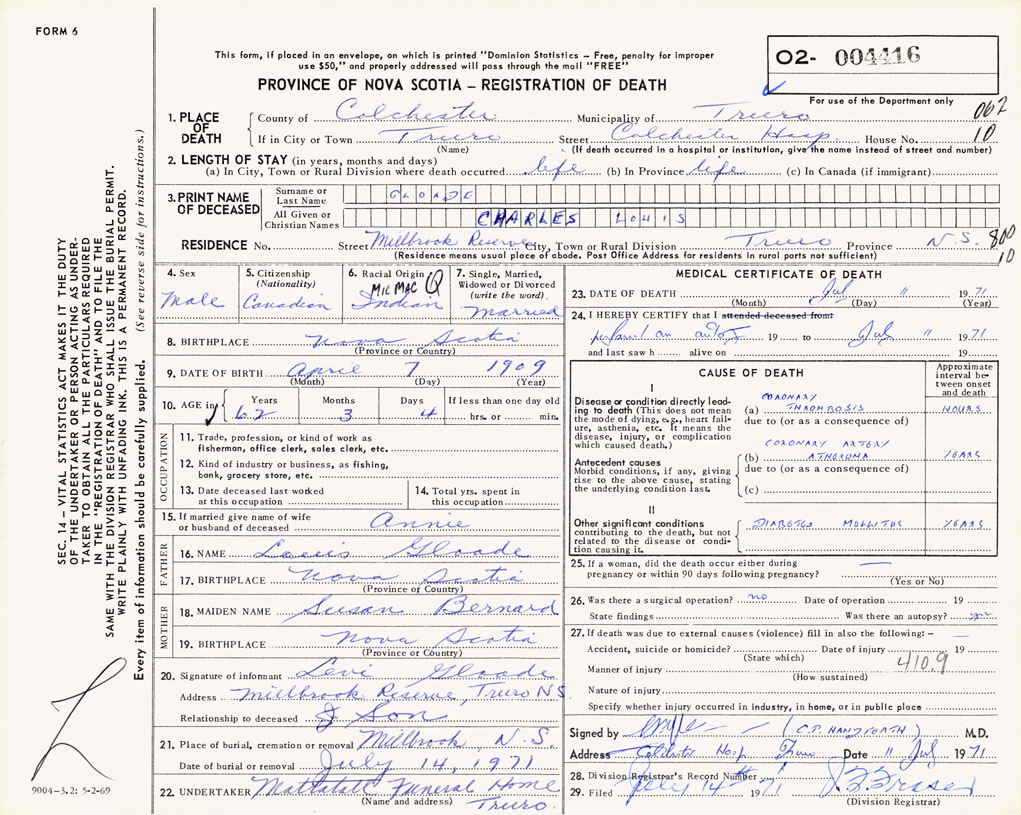 PROVINCE OF NOVA SCOTIA — REGISTRATION OF DEATH