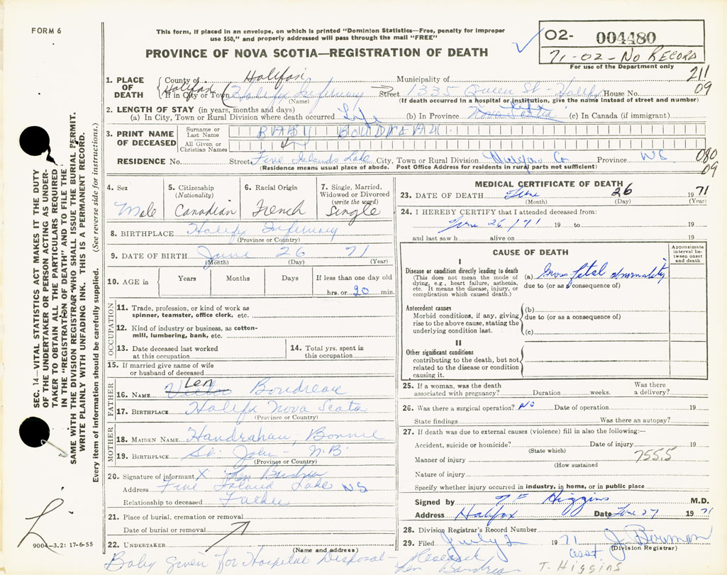 3. PRINT NAME OF DECEASED Boudreau, Baby Boy