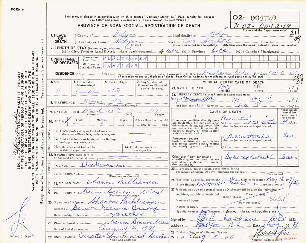 PROVINCE OF NOVA SCOTIA — REGISTRATION OF DEATH