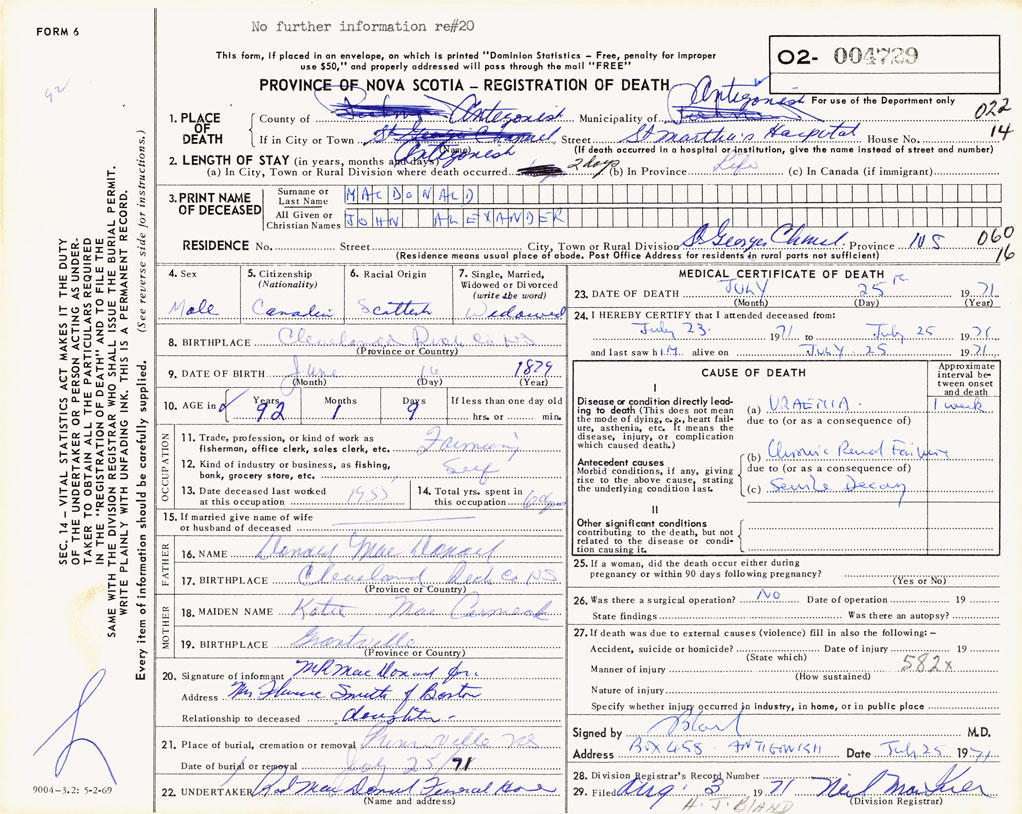3. PRINT NAME OF DECEASED MacDonald, John Alexander