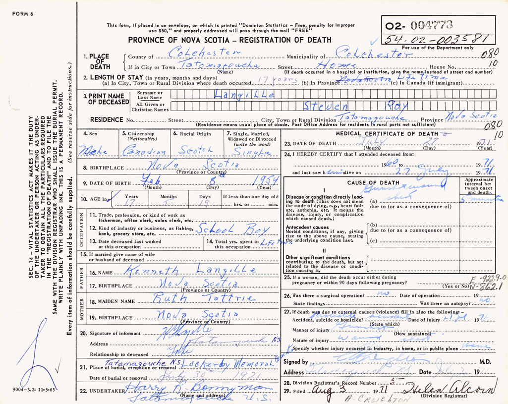 3. PRINT NAME OF DECEASED Langille, Steven Roy