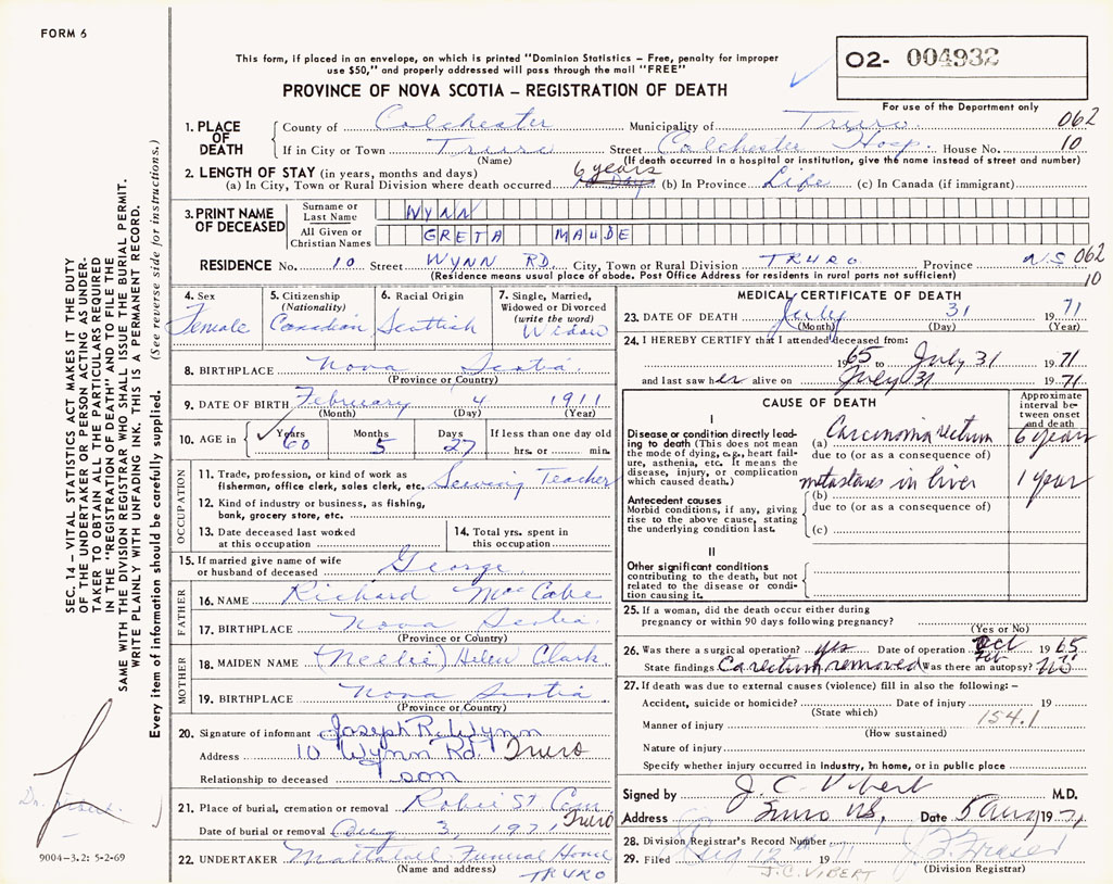 Nova Scotia Archives — https://archives.novascotia.ca/vital-statistics/death/?ID=497007