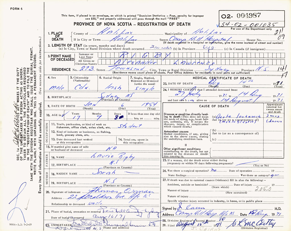 Nova Scotia Archives — https://archives.novascotia.ca/vital-statistics/death/?ID=497062