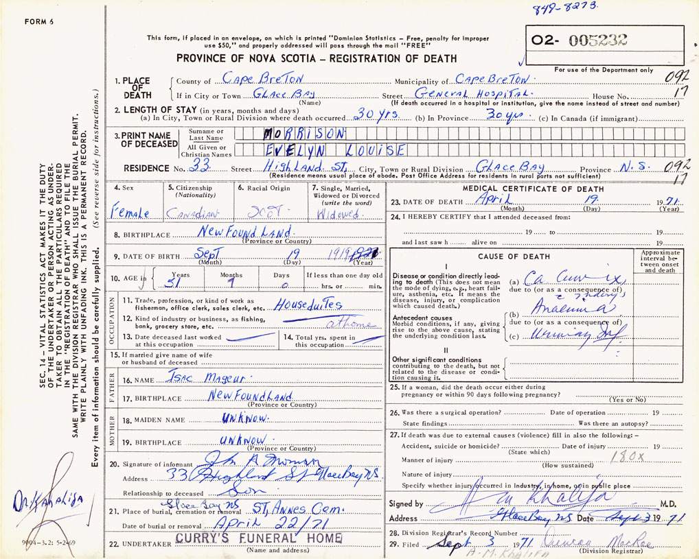 Nova Scotia Archives — https://archives.novascotia.ca/vital-statistics/death/?ID=497306