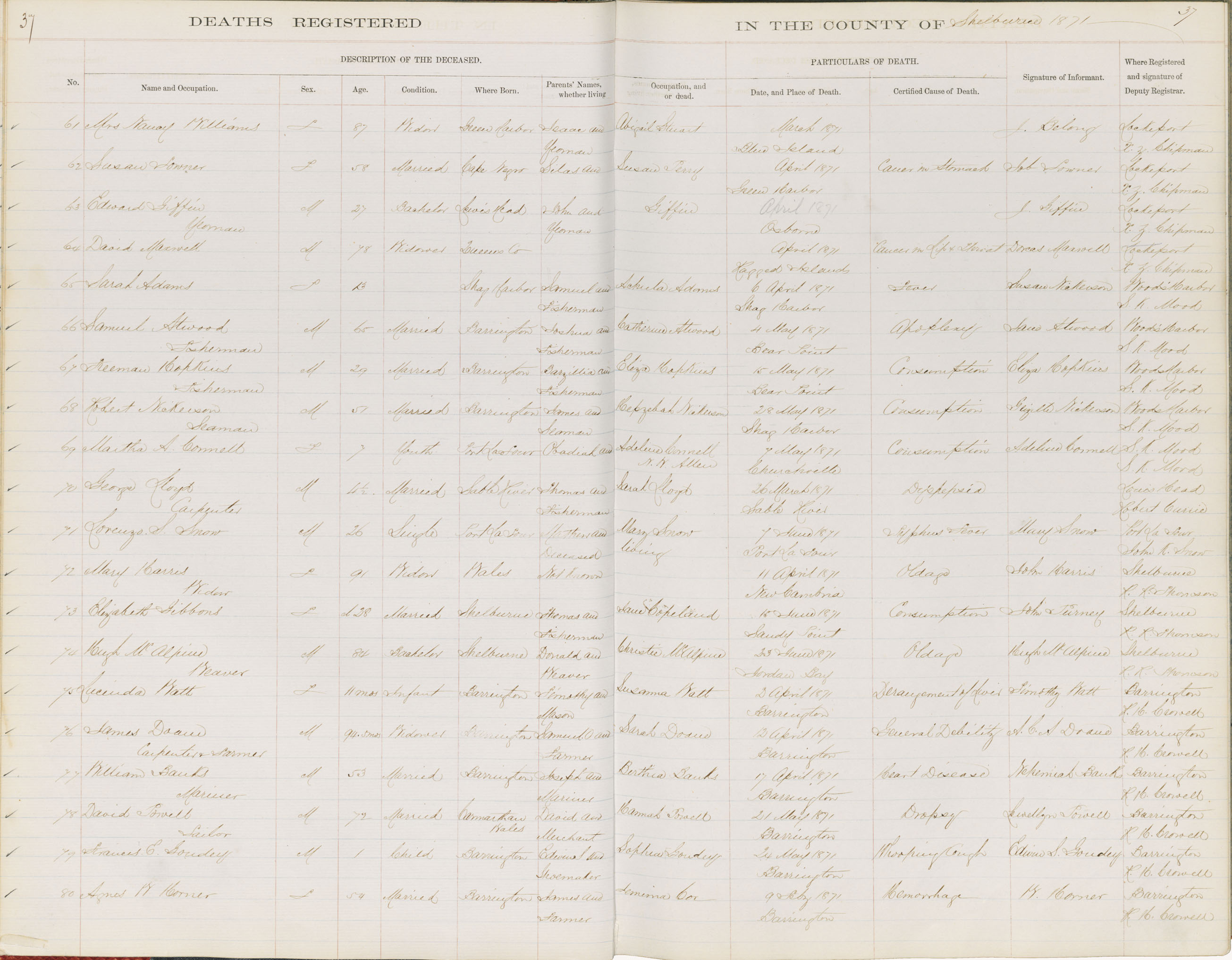 Death Registration: Year: 1871 book: 1816 page: 37 number: 61