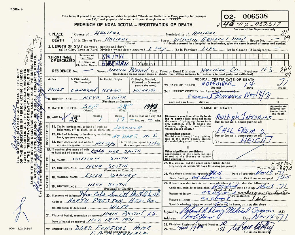PROVINCE OF NOVA SCOTIA — REGISTRATION OF DEATH