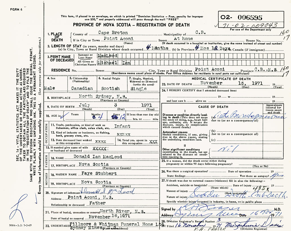 PROVINCE OF NOVA SCOTIA — REGISTRATION OF DEATH