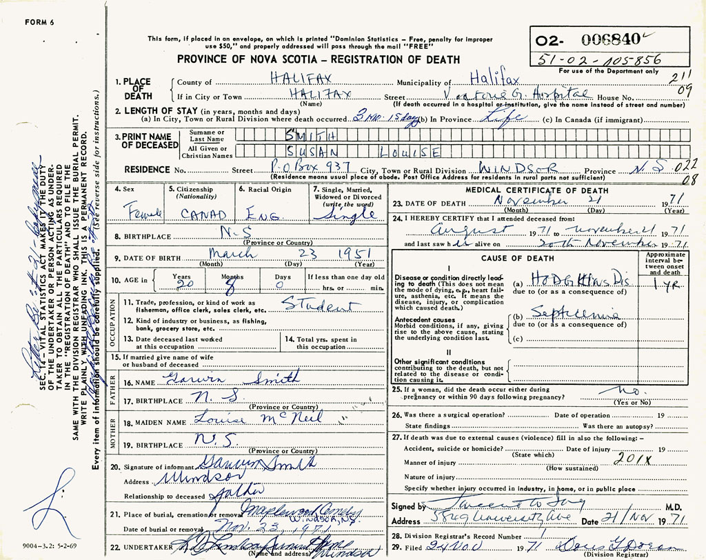 PROVINCE OF NOVA SCOTIA — REGISTRATION OF DEATH