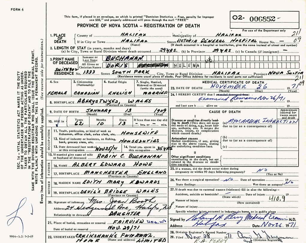 21. Place of burial Fairview Cemetery, Halifax, NS