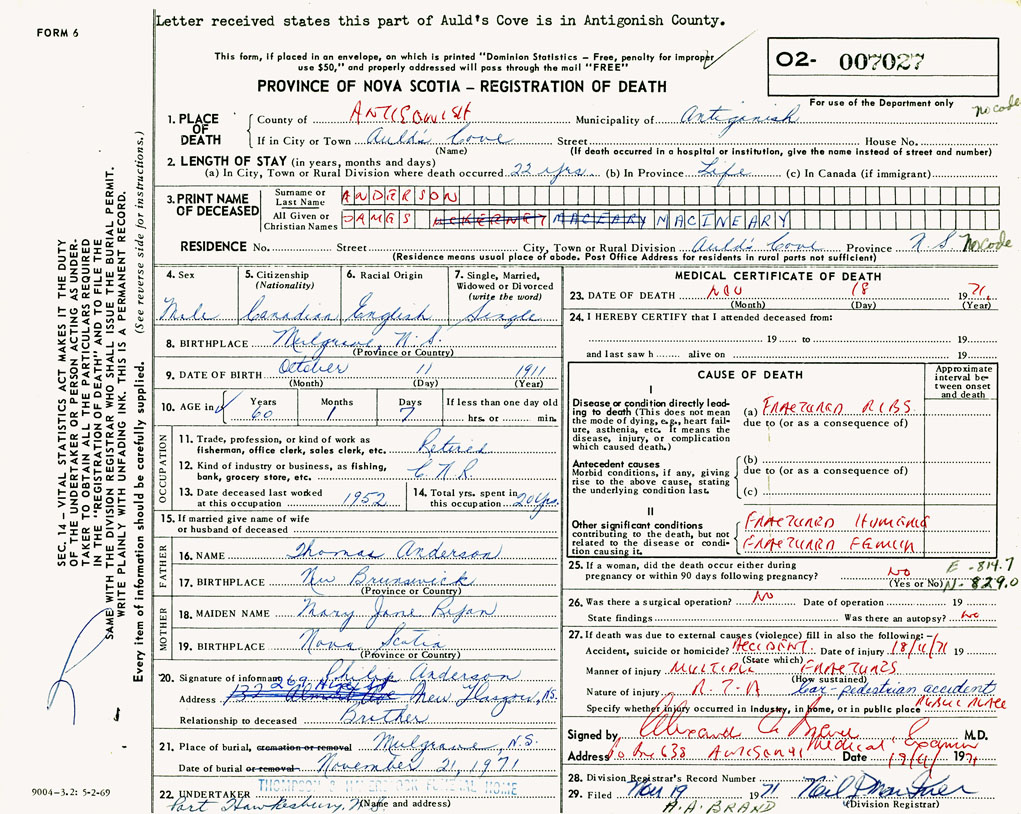 PROVINCE OF NOVA SCOTIA — REGISTRATION OF DEATH