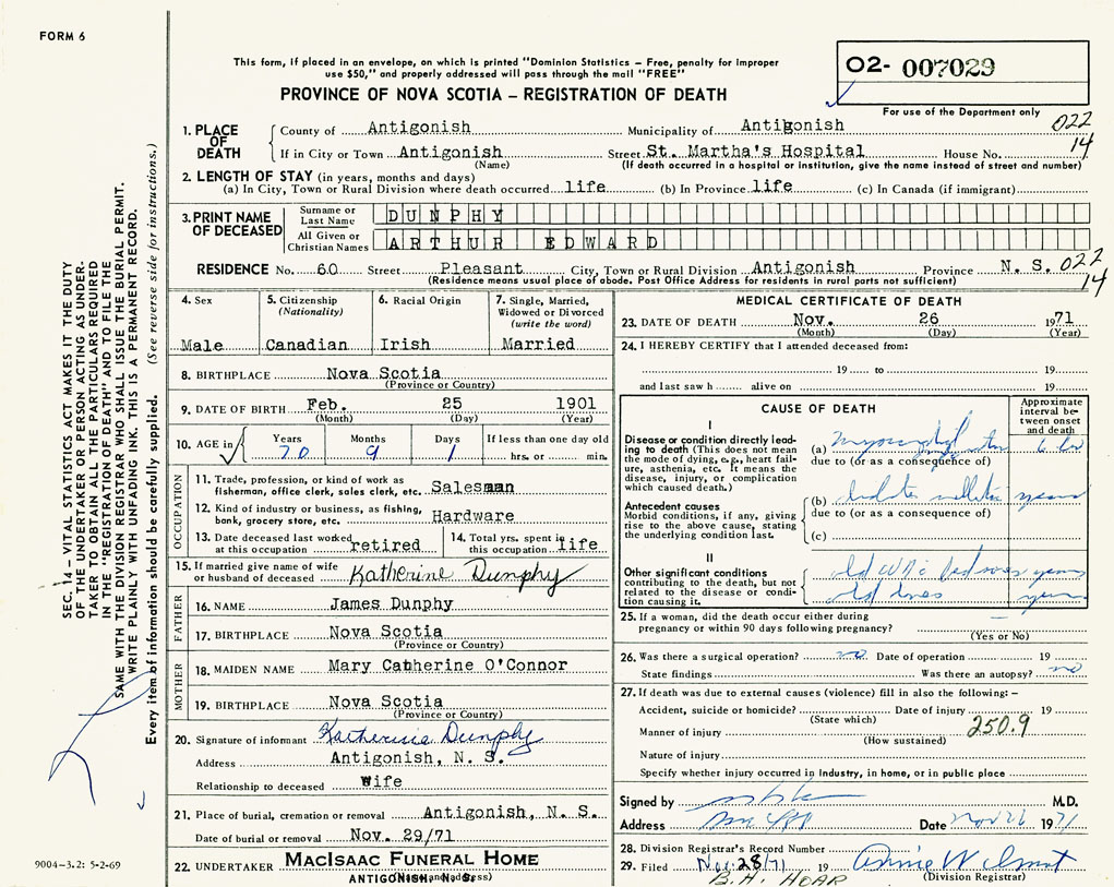 PROVINCE OF NOVA SCOTIA — REGISTRATION OF DEATH