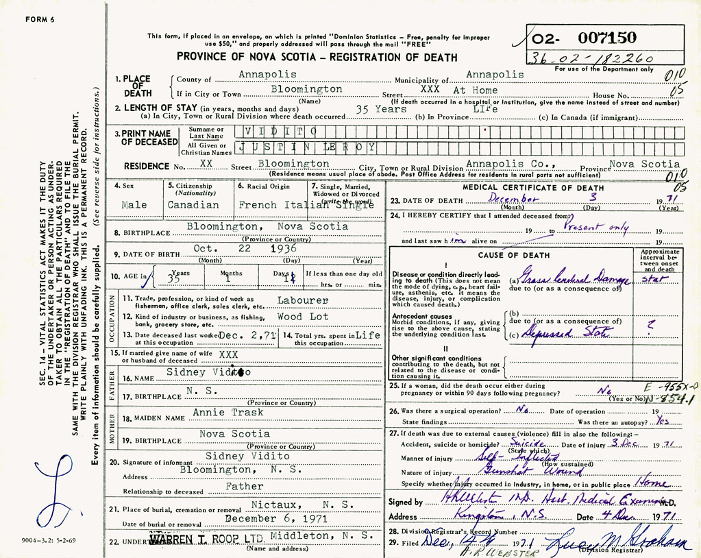 PROVINCE OF NOVA SCOTIA — REGISTRATION OF DEATH