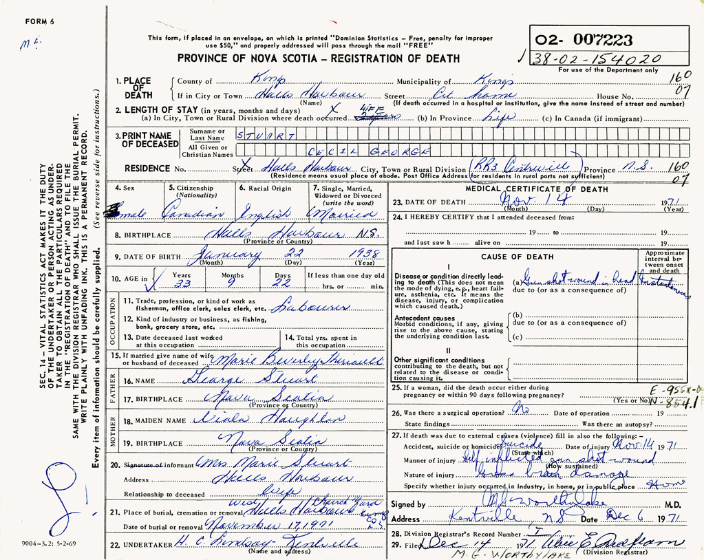 PROVINCE OF NOVA SCOTIA — REGISTRATION OF DEATH
