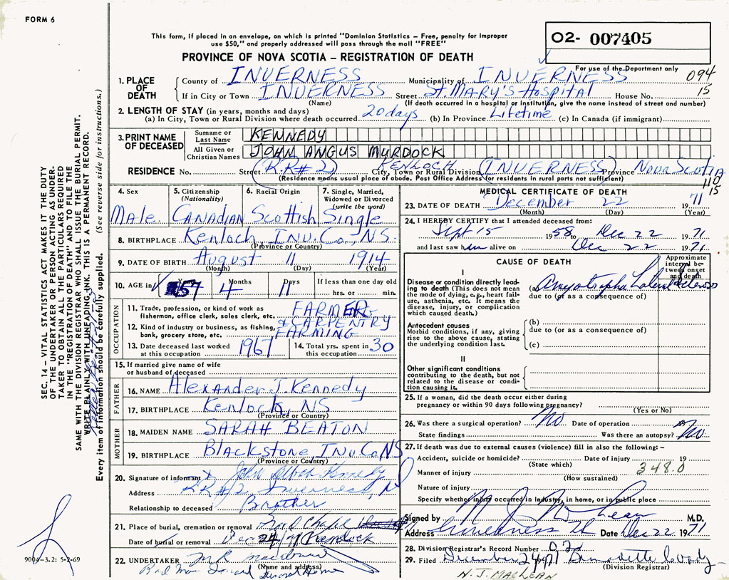 3. PRINT NAME OF DECEASED Kennedy, John Angus Murdock