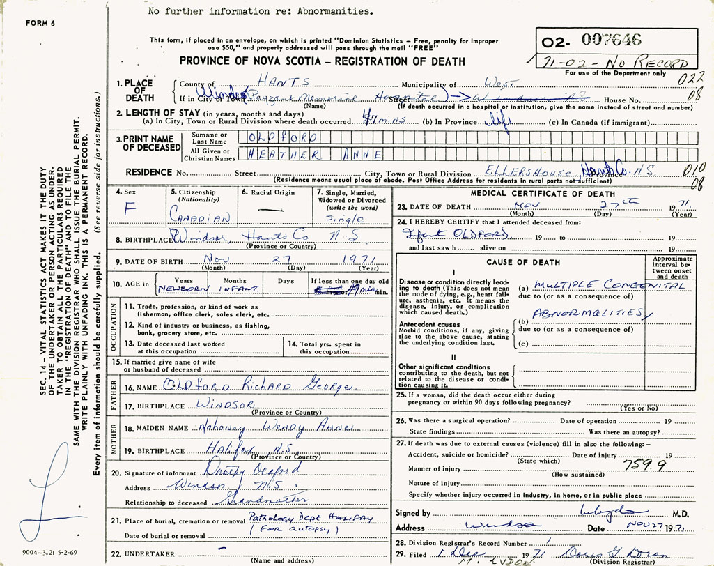 3. PRINT NAME OF DECEASED Oldford, Heather Anne