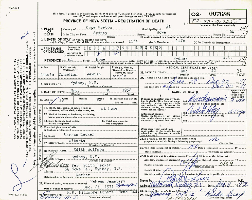 3. PRINT NAME OF DECEASED Lecker, Debra Lynn