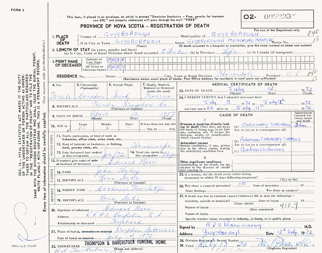 Death Registration: Year: 1972 number: 5093