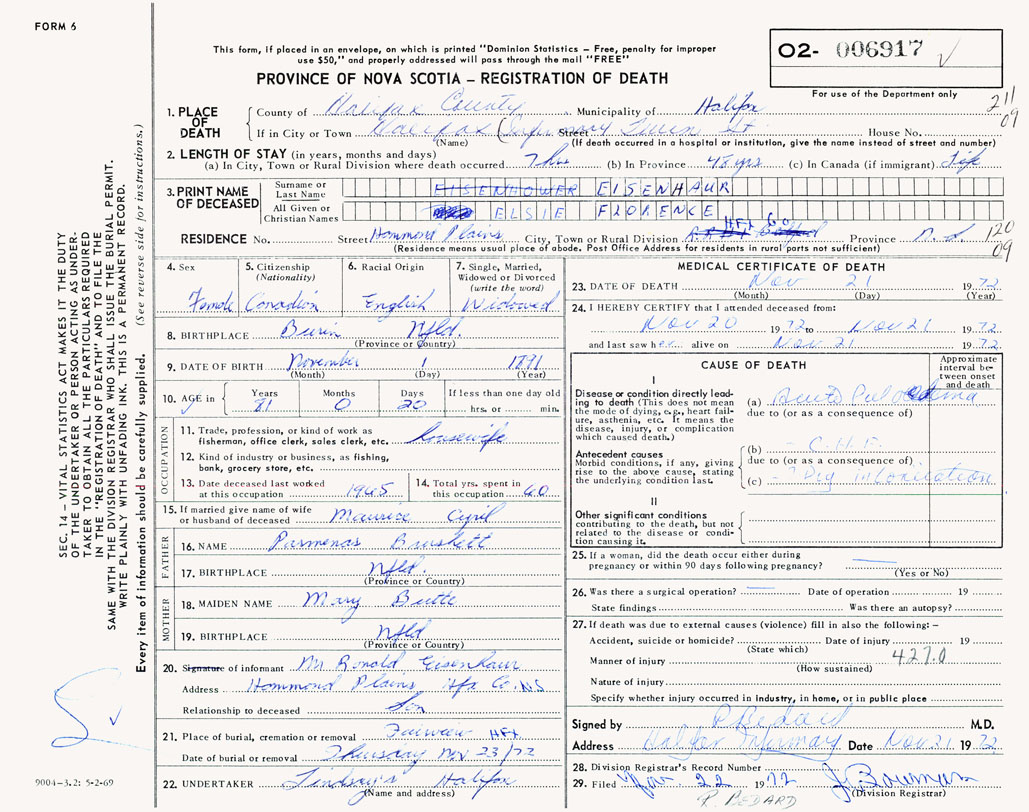 Death Registration: Year: 1972 number: 6917