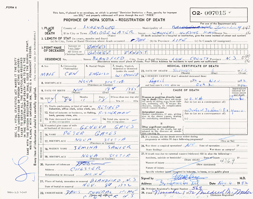 Death Registration: Year: 1972 number: 7015