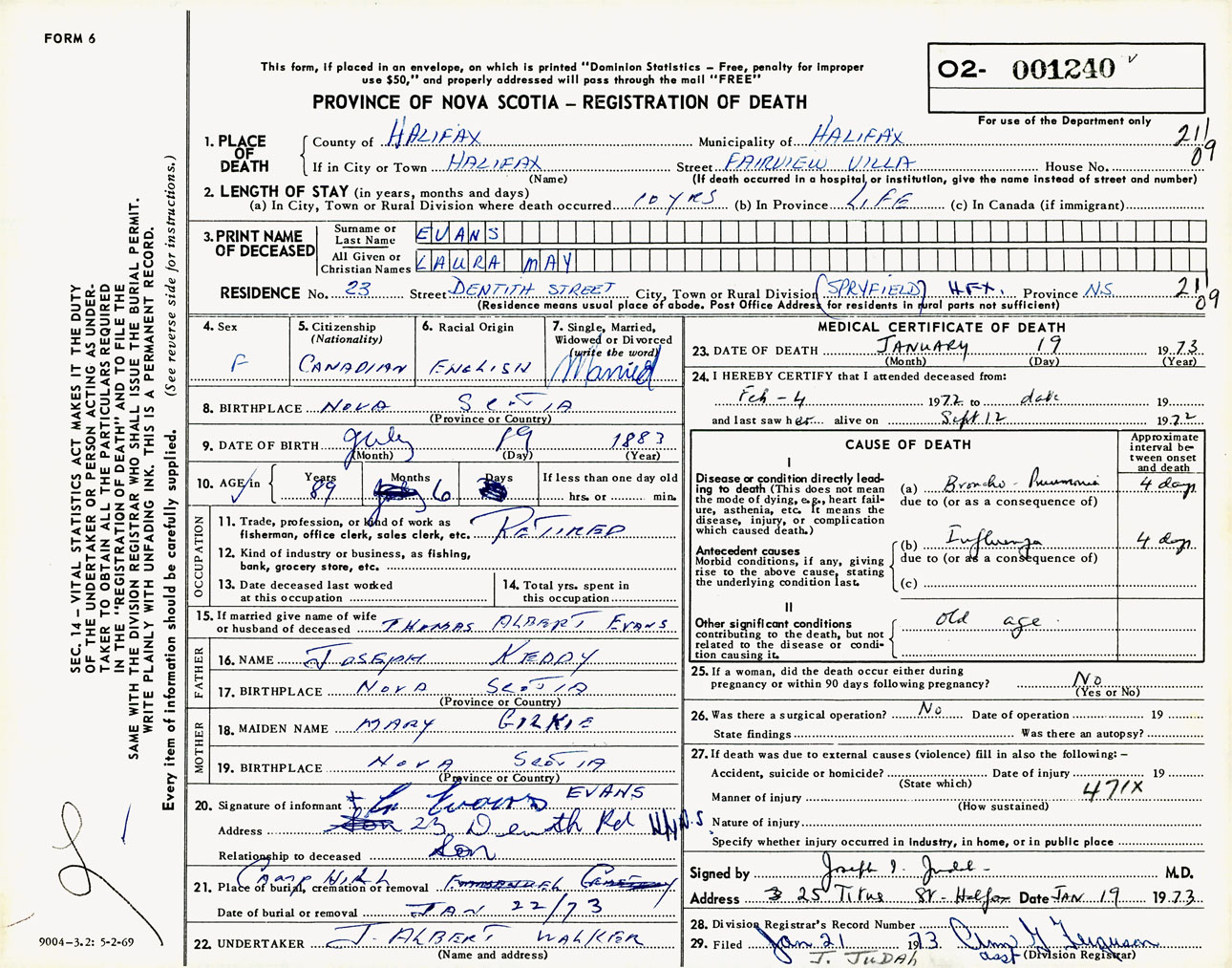 Female Death Registration: Year: 1973 number: 1240