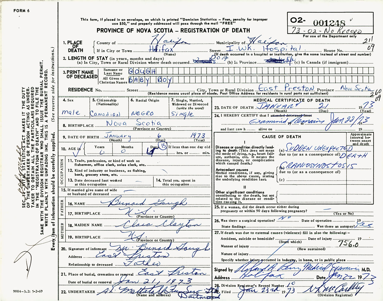 Male Death Registration: Year: 1973 number: 1248