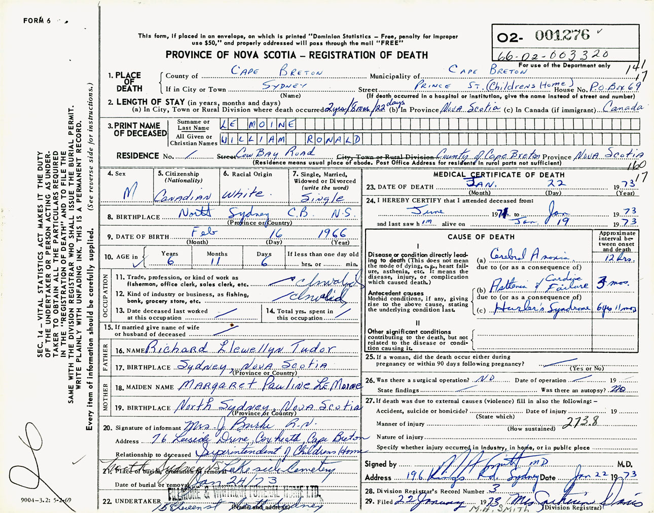 Male Death Registration: Year: 1973 number: 1276