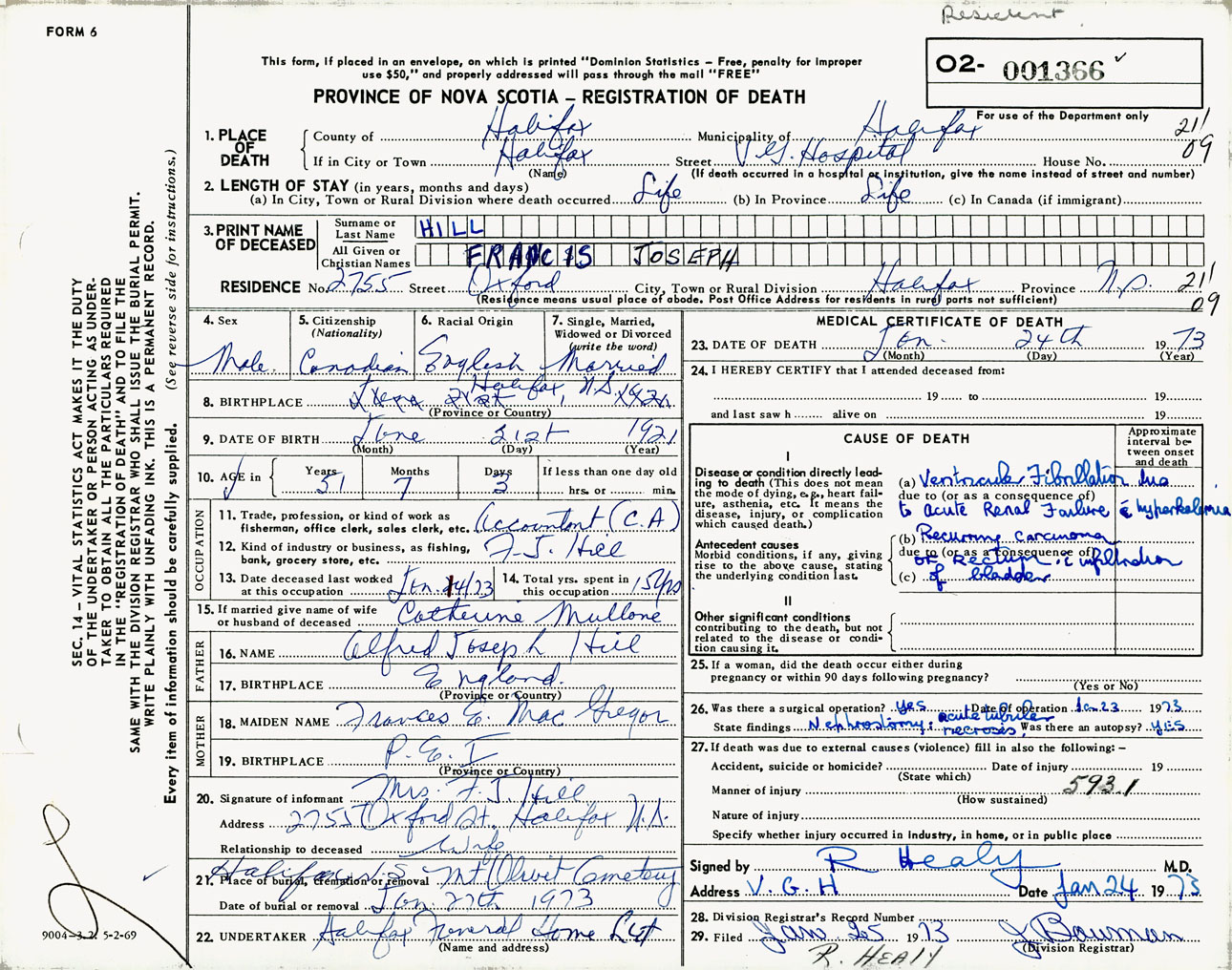 Male Death Registration: Year: 1973 number: 1366
