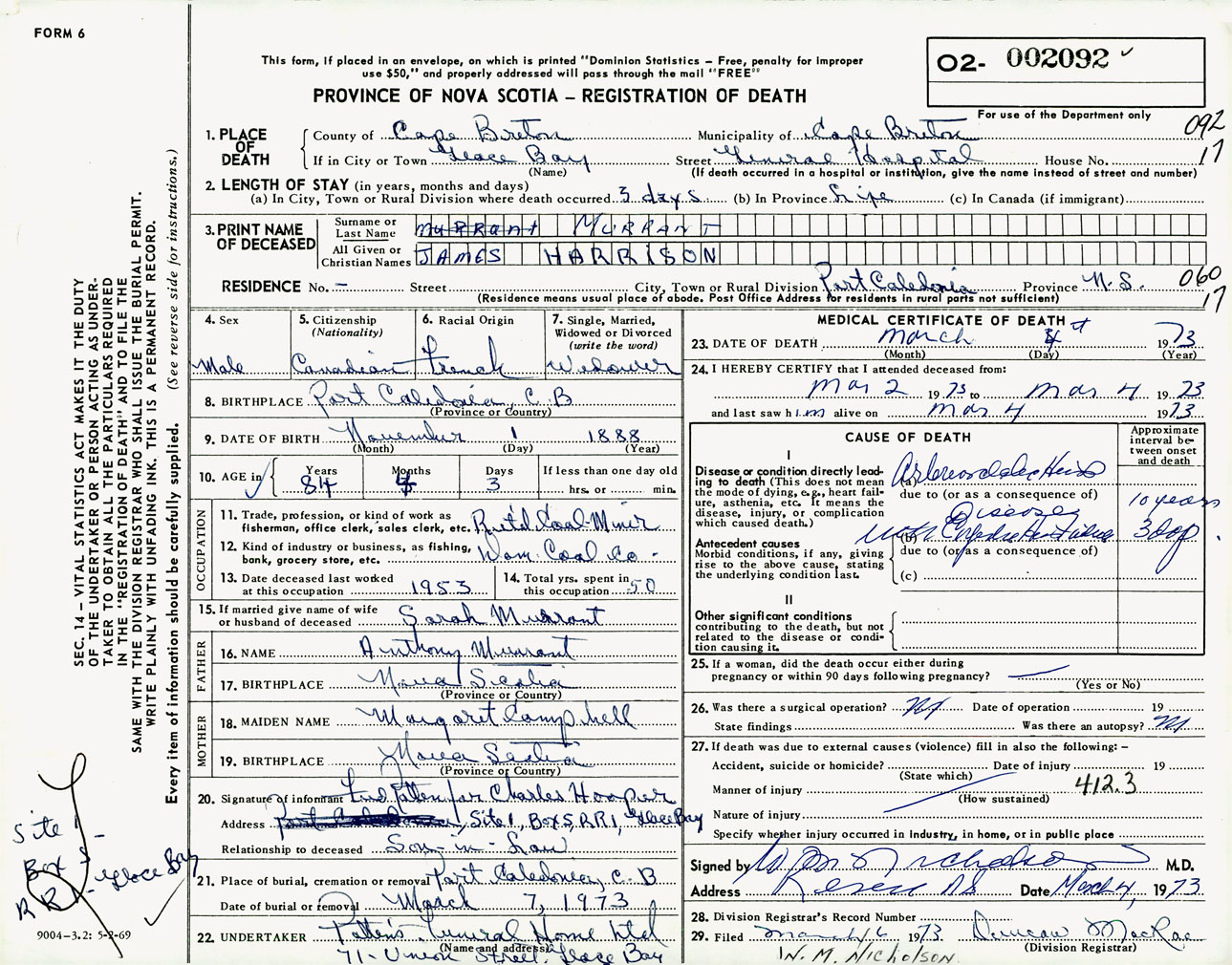 Male Death Registration: Year: 1973 number: 2092