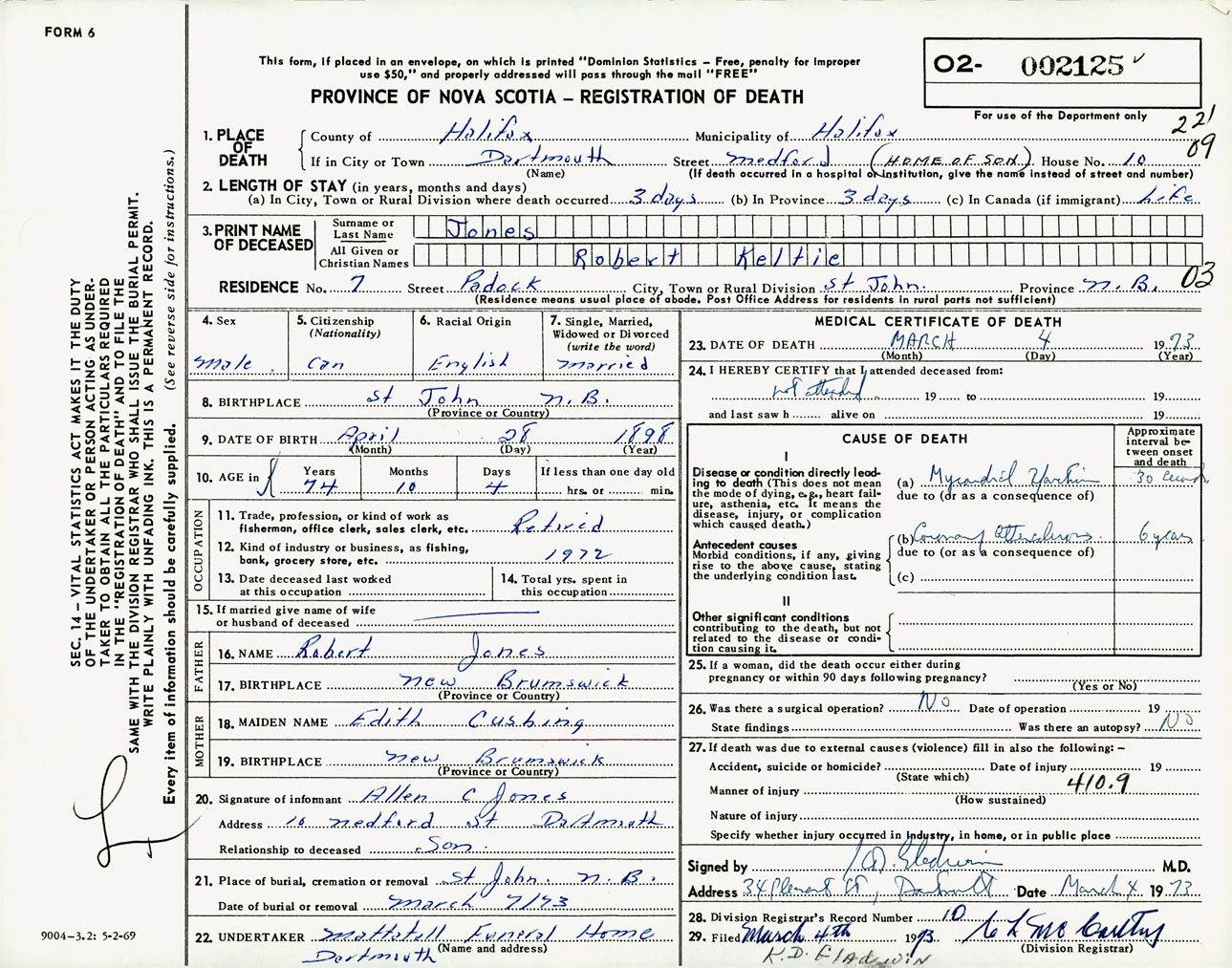 Male Death Registration: Year: 1973 number: 2125