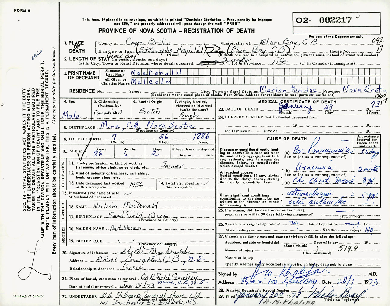 Male Death Registration: Year: 1973 number: 2217