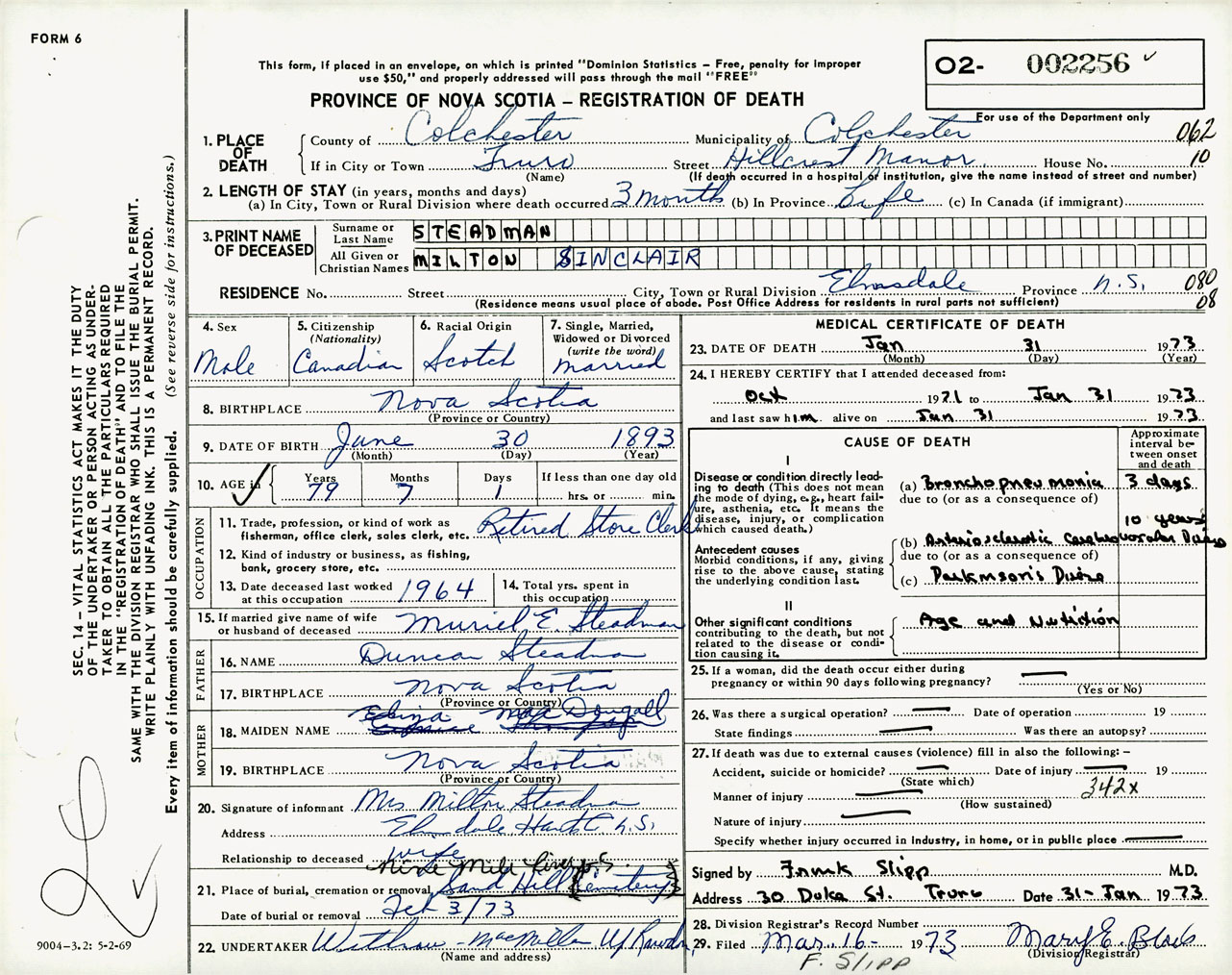 Male Death Registration: Year: 1973 number: 2256