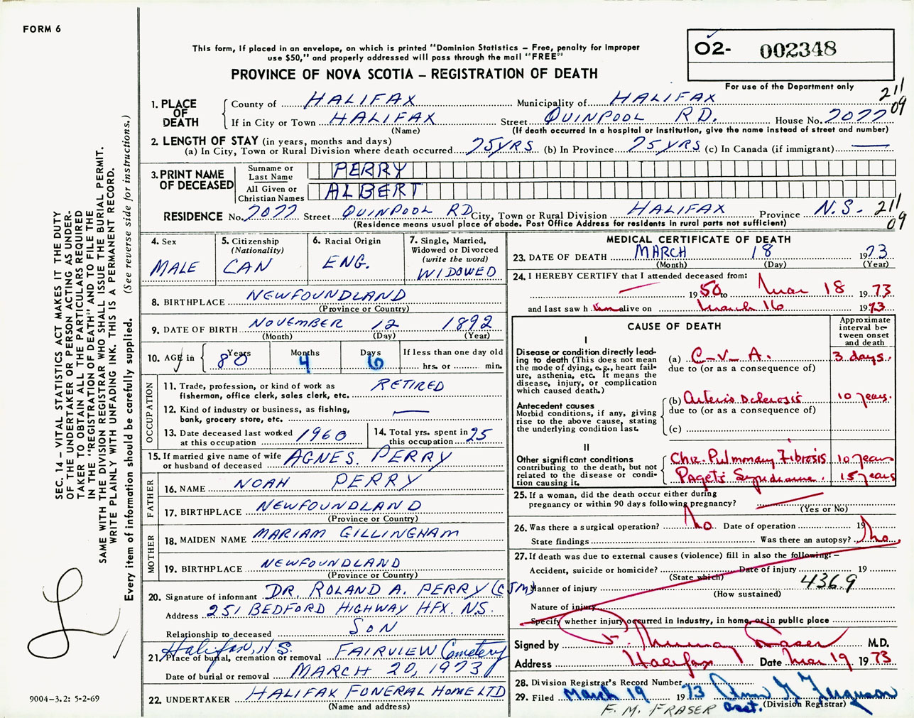 Male Death Registration: Year: 1973 number: 2348