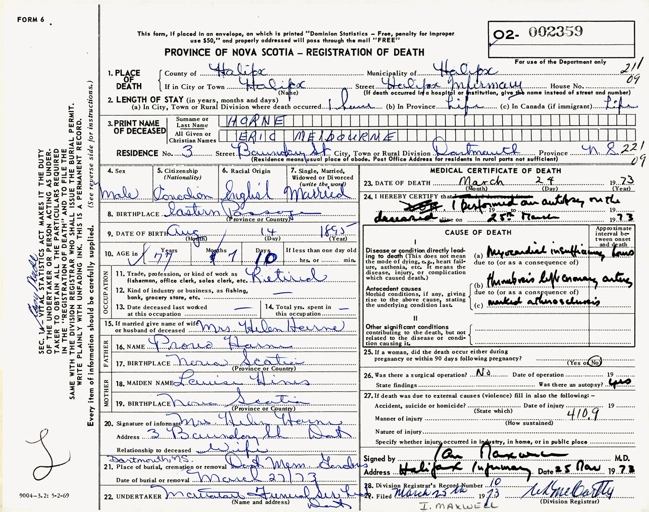 Male Death Registration: Year: 1973 number: 2359