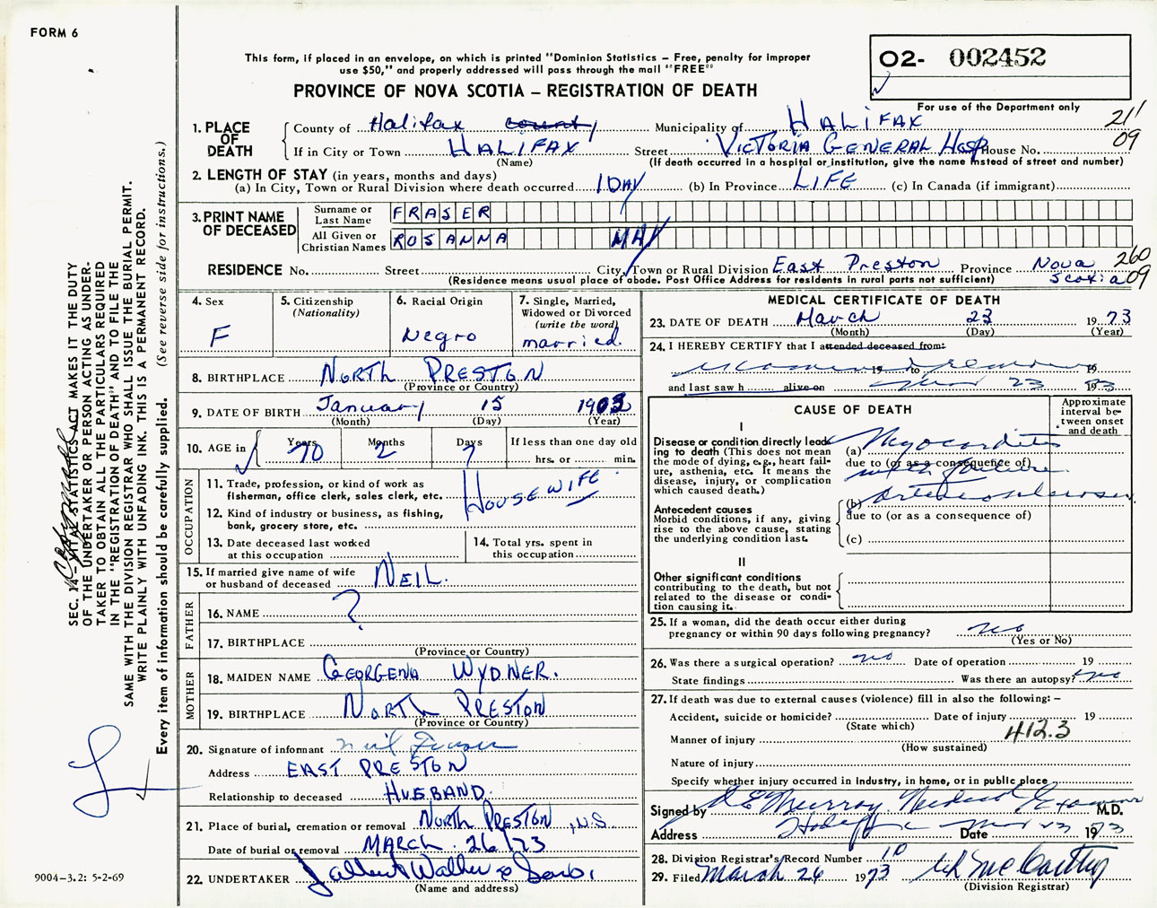 Female Death Registration: Year: 1973 number: 2452