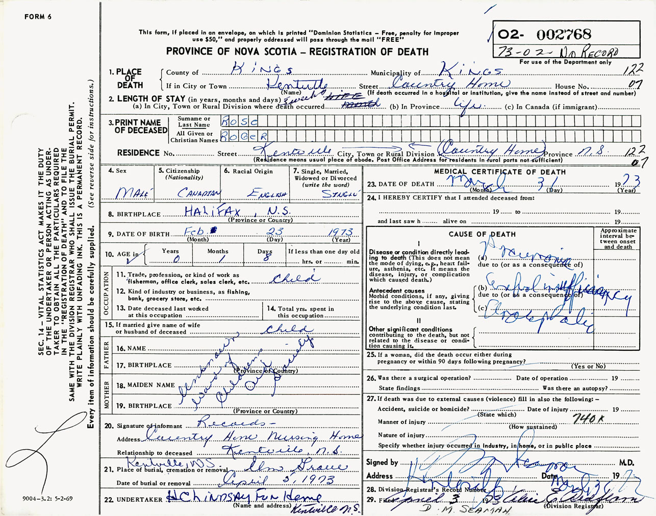 Male Death Registration: Year: 1973 number: 2768