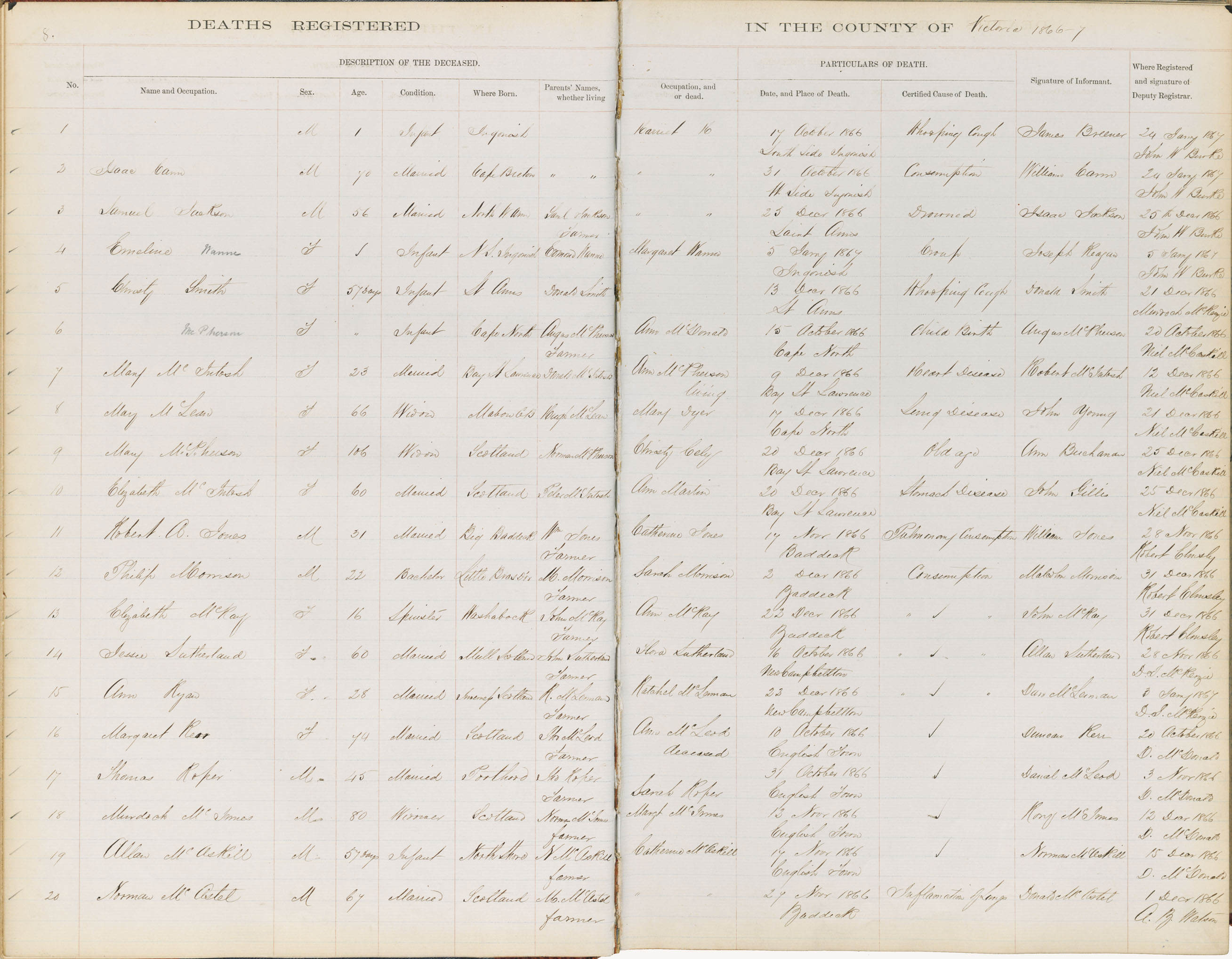 Death Registration: Year: 1866 book: 1817 page: 8 number: 1