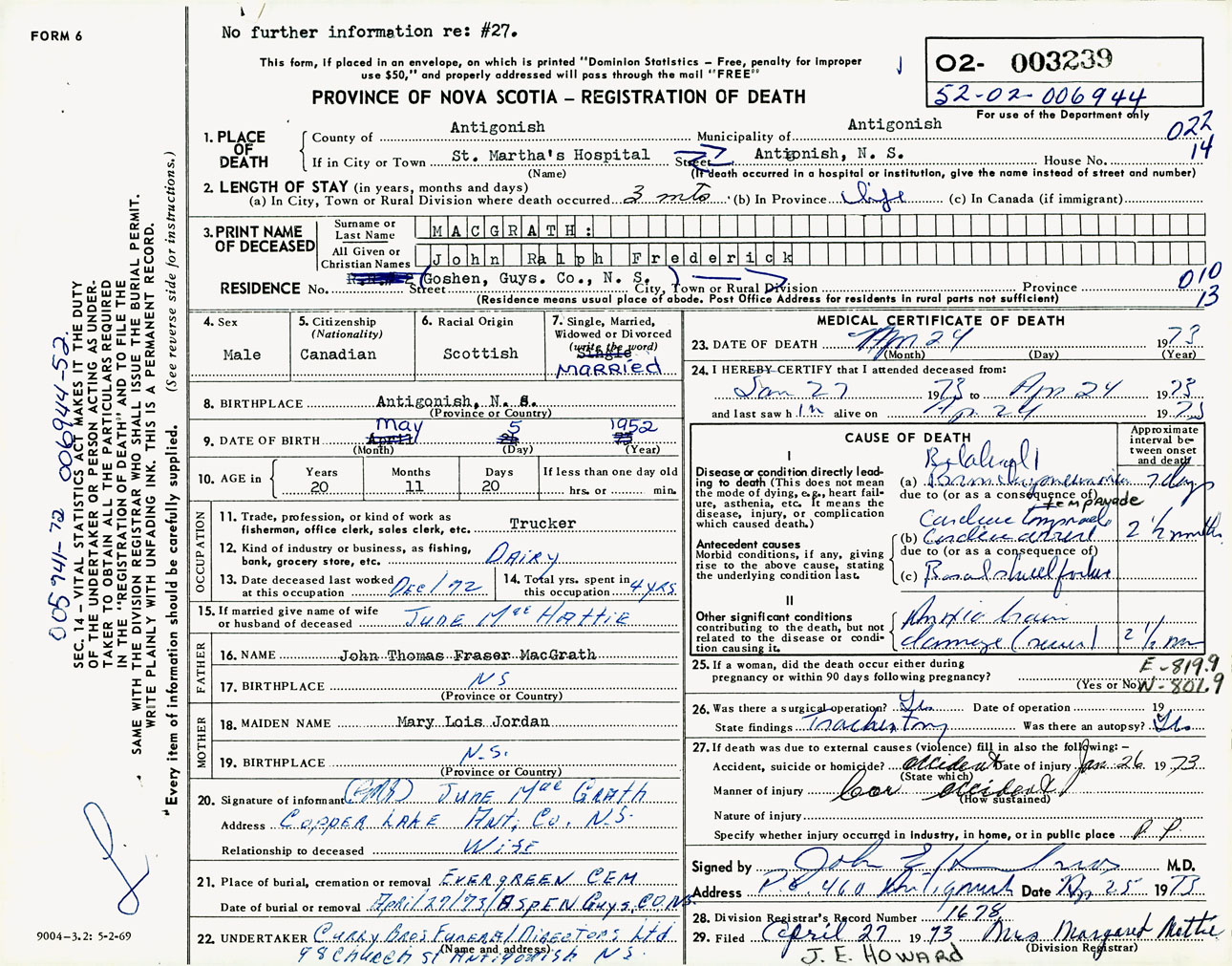 Male Death Registration: Year: 1973 number: 3239