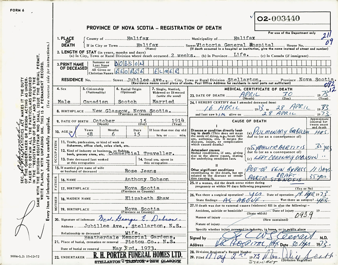 Male Death Registration: Year: 1973 number: 3440