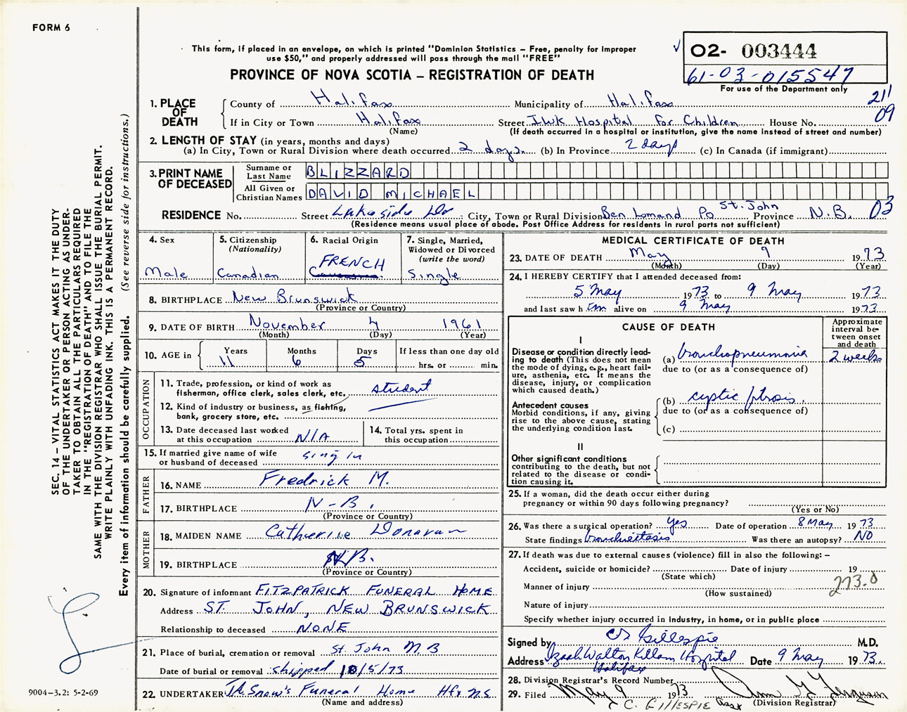 Male Death Registration: Year: 1973 number: 3444