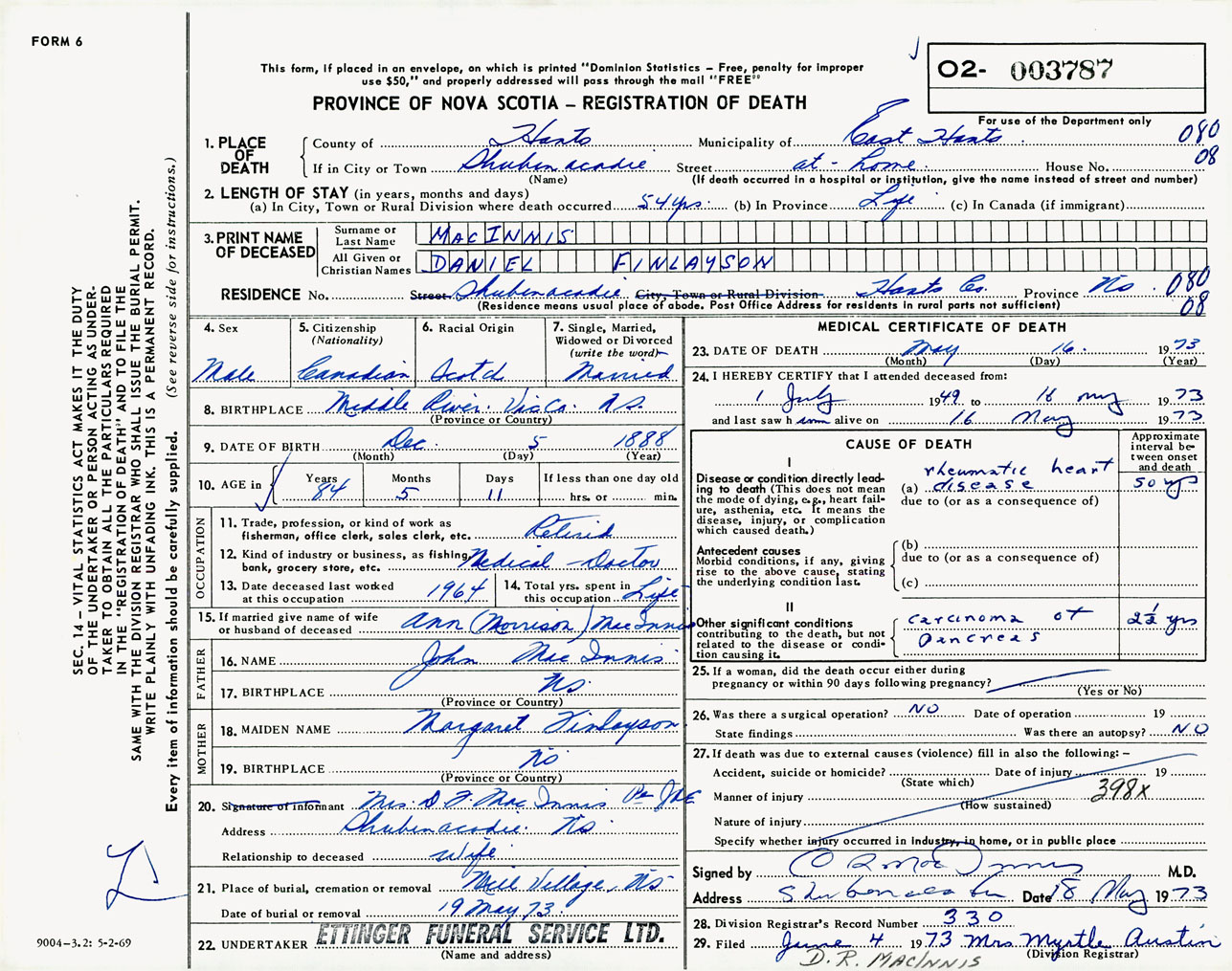 Male Death Registration: Year: 1973 number: 3787