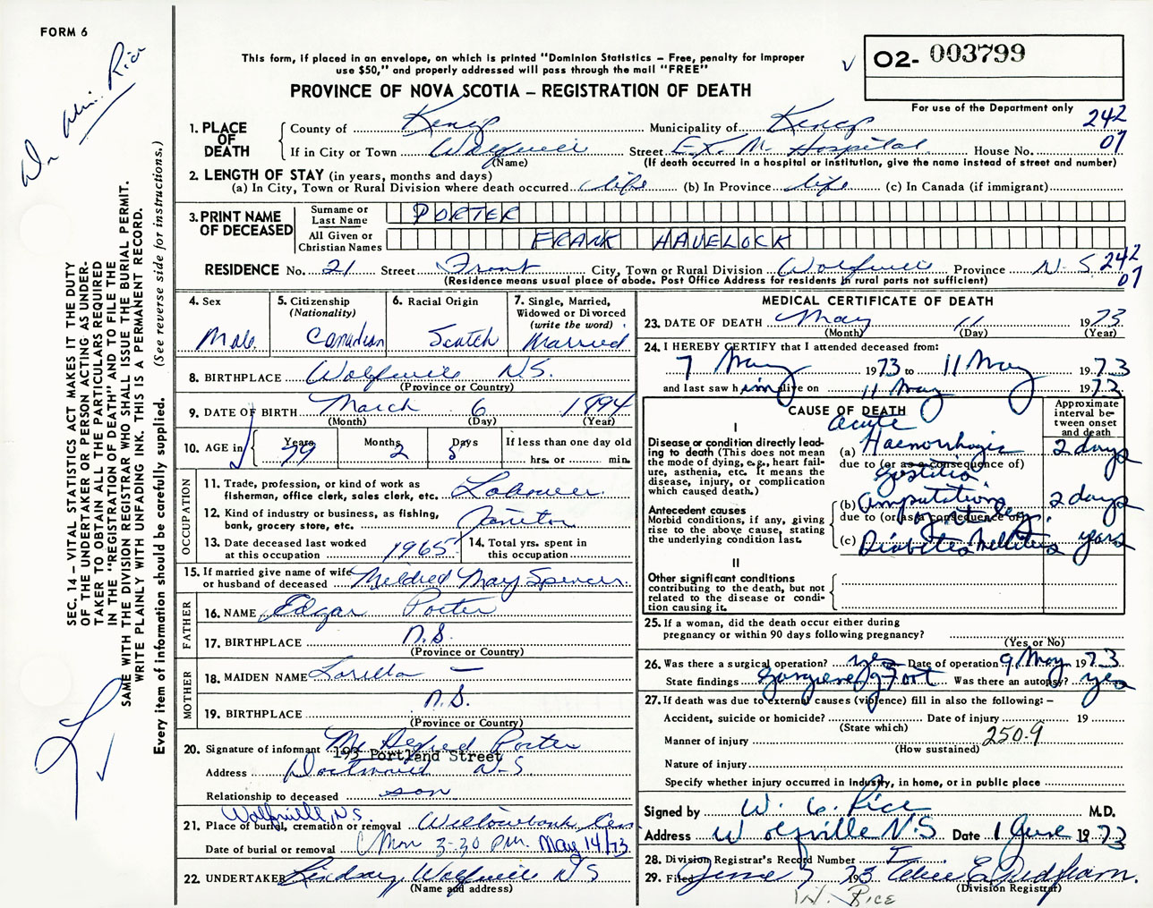 Male Death Registration: Year: 1973 number: 3799