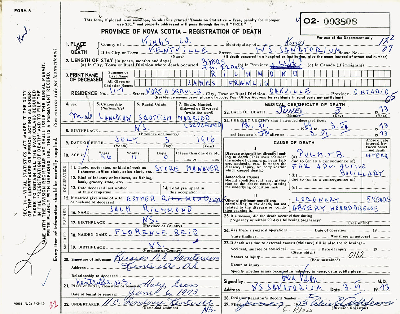 Male Death Registration: Year: 1973 number: 3808