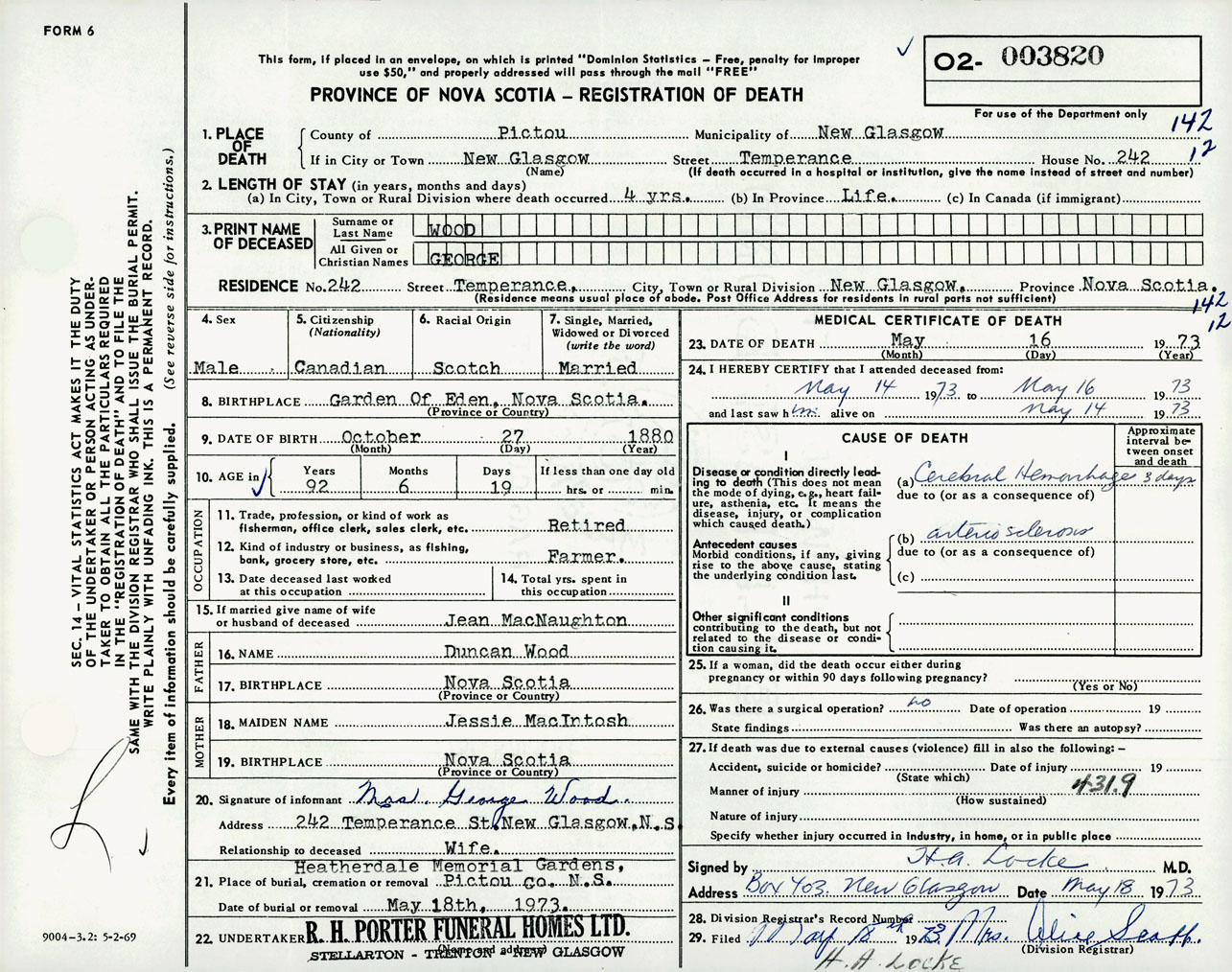 Male Death Registration: Year: 1973 number: 3820