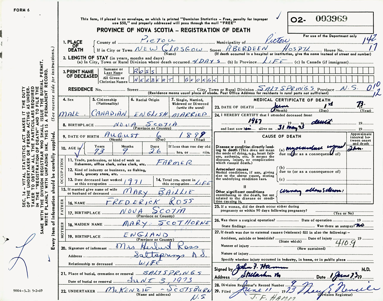 Male Death Registration: Year: 1973 number: 3969